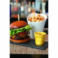 Cette assiette, dotée d’une encoche de 5 cm de diamètre, vous permettra de réaliser de belles assiettes avec un gobelet Revol 8cl dans lequel vous pourrez verser Espresso, sauce et autres préparations.