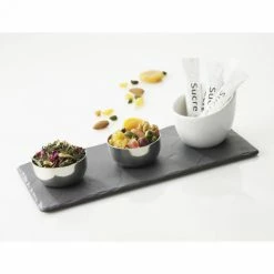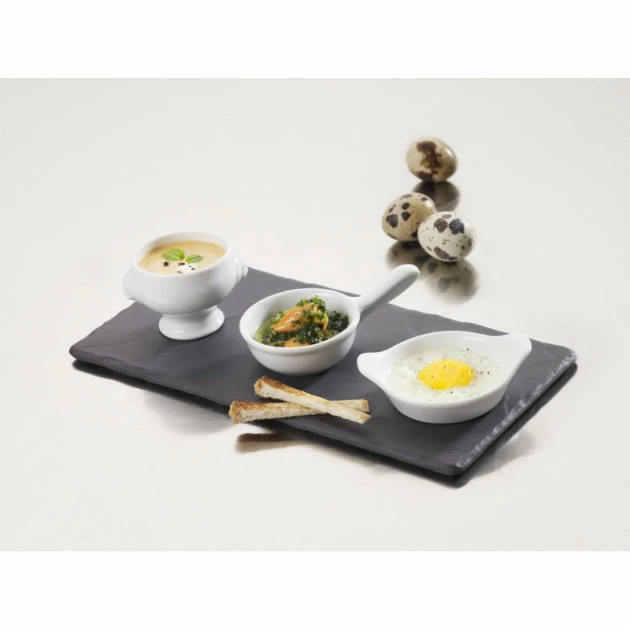 Offrez vous le meilleur dans votre cuisine avec le plateau rectangulaire effet ardoise 25 x 12 cm de Revol. Ce plateau est en réalité en porcelaine d’origine 100% naturelle teintée en noire dans la masse pour créer l’illusion parfaite de l’ardoise.